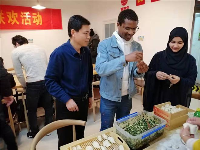 联欢会上,教师和留学生们唱歌跳舞,写福字,包水饺,品尝中国美食,体会浓浓“年”味,在欢声笑语中回顾过去,畅想未来,共叙友谊。当地知名书法家现场挥毫泼墨,一幅幅优秀作品吸引了在场的留学生同学,他们纷纷竖起大拇指,点赞中国文化深厚底蕴。活动丰富了我校留学生的寒假生活,增强了他们的归属感,促进了“一带一路”背景下中外文化的交流互通。