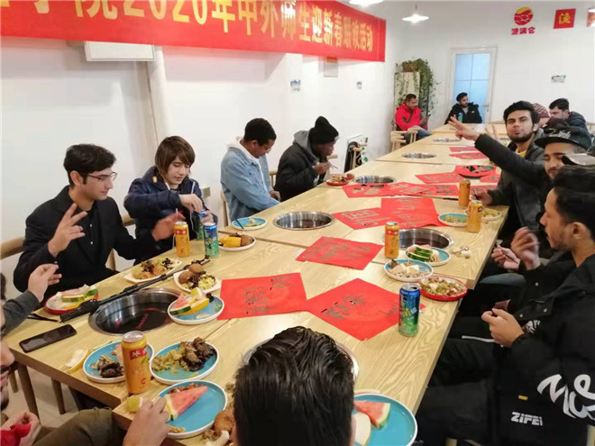 1月13日下午,国际教育学院在日照校区举行2020年中外师生迎新春联欢会,80余名师生欢聚一堂,共庆中国农历新年的到来。