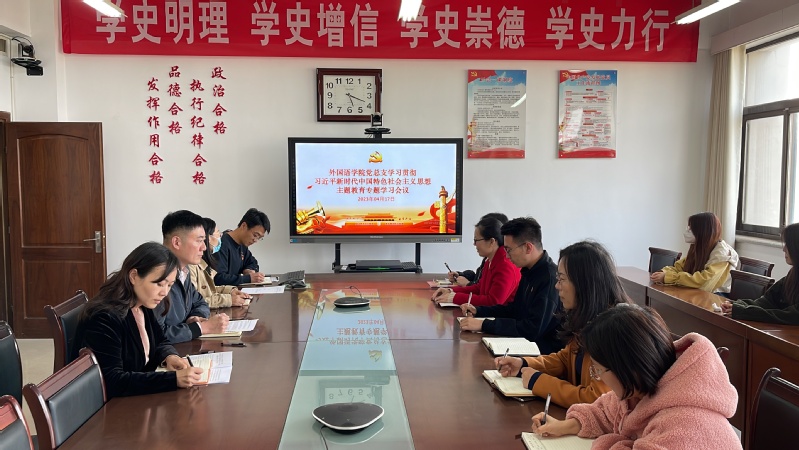 4月17日下午,外国语学院党总支理论学习中心组(扩大)在日照校区1229会议室和济宁校区0713会议室同步视频举行2023年第5次集体学习,会议由党总支副书记史飞主持。