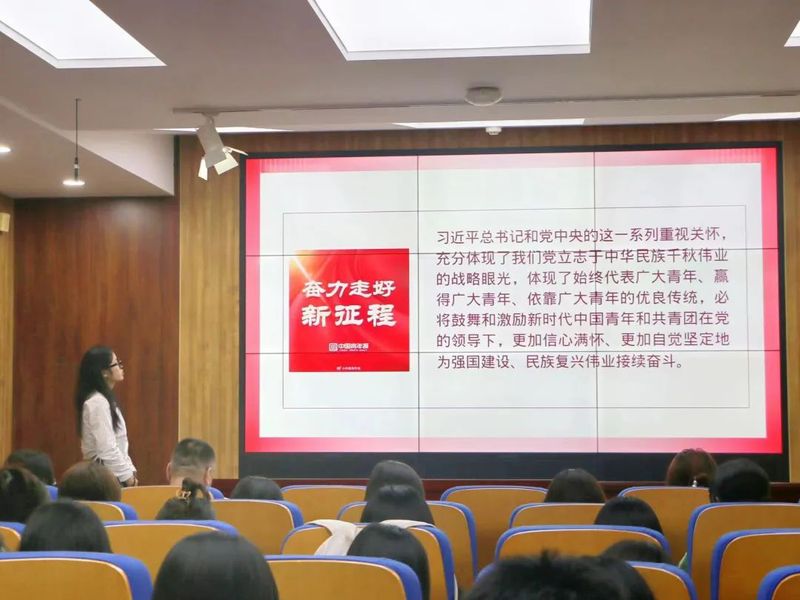 为深入学习宣传贯彻习近平总书记在同团中央新一届领导班子成员集体谈话时的重要讲话精神,全面落实共青团十九大部署,进一步加强班团基层组织建设,9月20日,外国语学院2021级英语(跨境)本科1班团支部开展“青春逢盛会,奋进正当时”主题团日活动。学院团总支负责老师、各班班长、团支部书记和学生会学生骨干现场观摩学习。