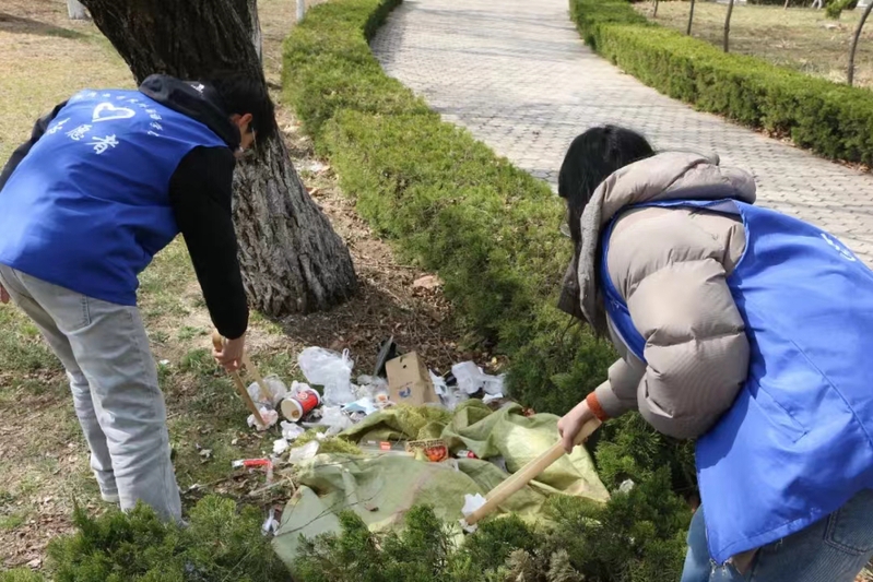 活动当天,志愿者们纷纷撸起袖子,拿起清洁用具,尽显无私奉献和吃苦耐劳精神,认真清扫鉴湖边、草坪上和花丛中的塑料瓶、纸屑、果皮、包装袋等垃圾,并装进了自带的垃圾袋中。校园内处处展现着志愿者们弯腰拾起垃圾的身影,他们用实际行动践行着“保护环境,人人有责”。在大家的齐心协力下,鉴湖周边被打扫得十分干净,赢得过路师生的高度赞许。