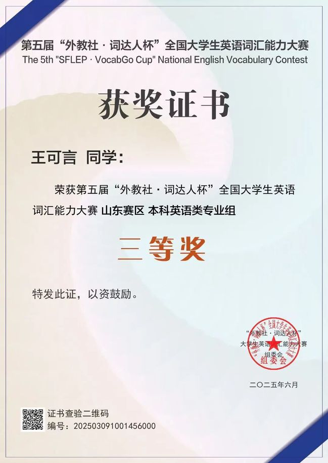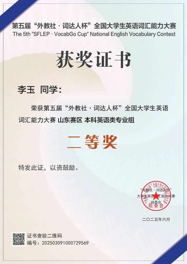 学院将“外研社・国才杯”“理解当代中国”全国大学生外语能力大赛作为连接学习与实践的关键纽带,举办多条赛道吸引全校学生广泛参与。经过校内激烈角逐,优秀代表在2025年山东省赛中再创佳绩:在综合能力、演讲、笔译、口译及短视频等七大赛项中全面开花,累计获得银奖、铜奖等多项荣誉。其中,短视频赛项团队以独特视角讲述中国医疗发展与乡村振兴故事,创意与内涵兼具,充分展现了青年学子以语言能力回应时代命题的责任担当。